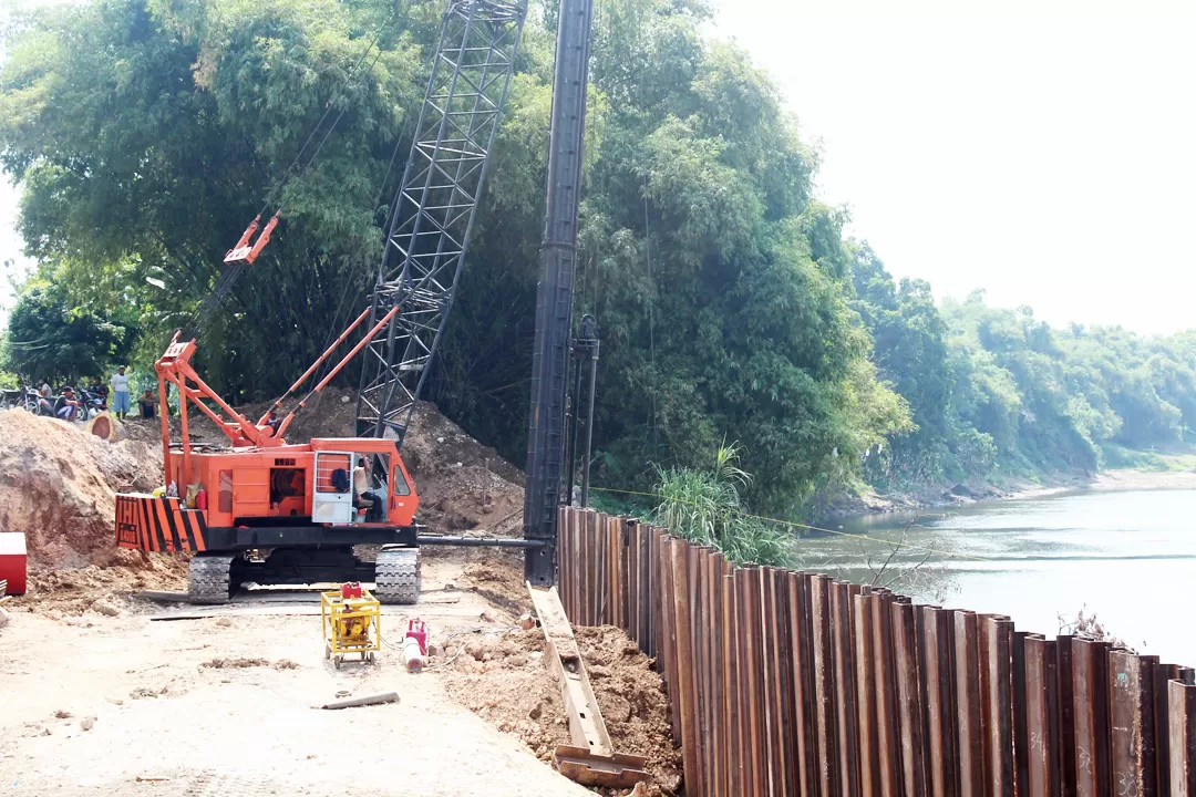 Dalam pantauan saat berada di lokasi longsor, terdapat alat berat diesel hammer untuk menancapkan steel sheet pile (SSP) atau turap baja. Sebanyak 110 turap baja sudah terpasang sejauh 60 meter.