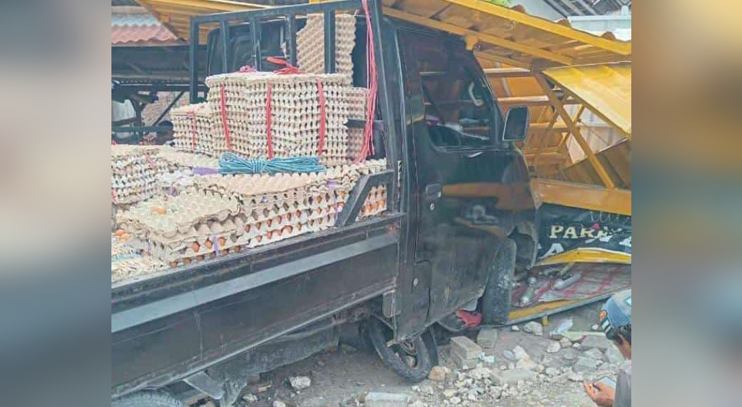 “Mobil pikap tersebut baru berhenti saat menabrak rumah warga yang berada di belakang kios teh dan parfum,” jelas polisi berpangkat satu balok emas di pundaknya itu.